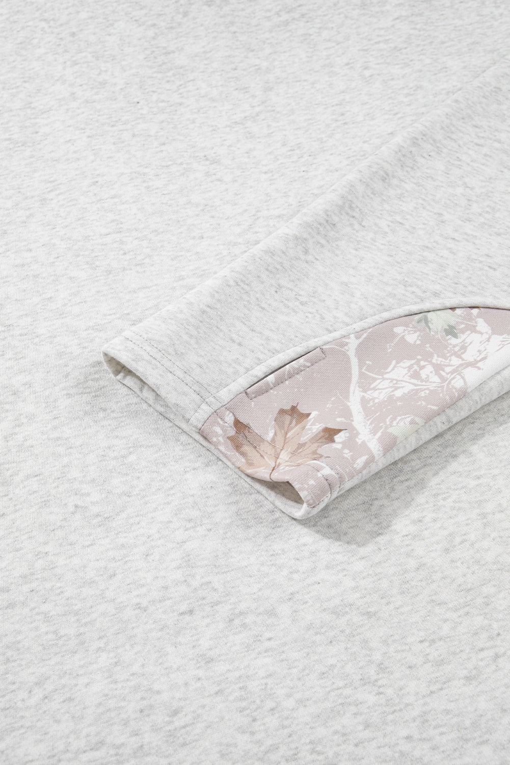 Gray Camo Leaves Patchwork Zipped Collar Pullover Plus Size Sweatshirt