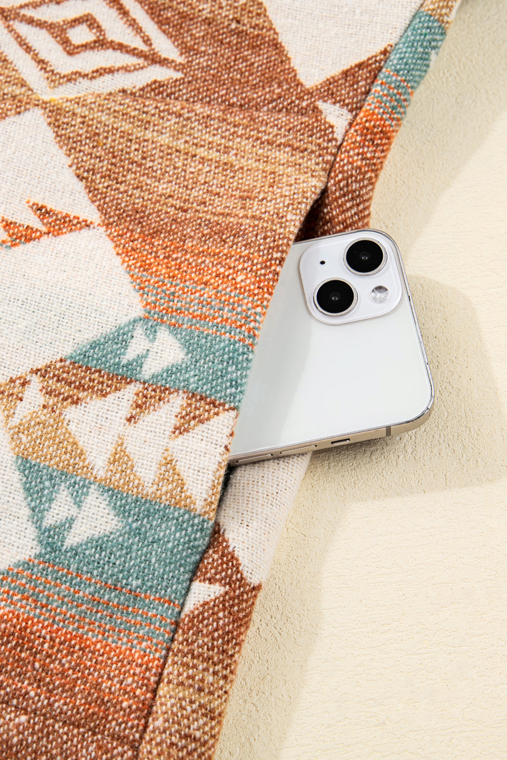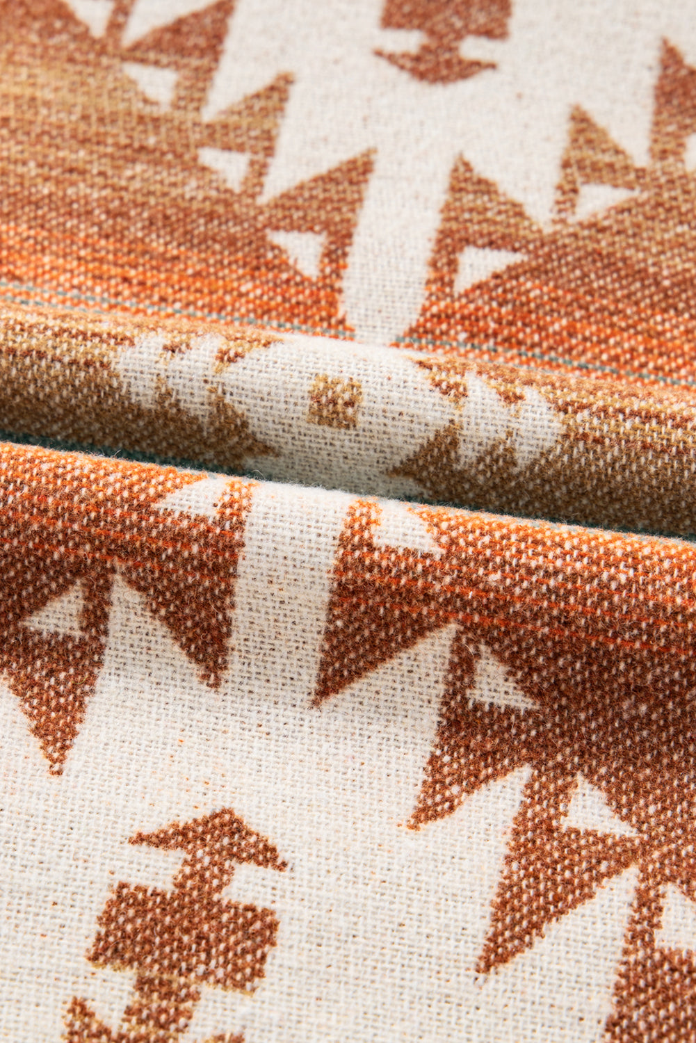 Khaki Quarter Zip Elastic Cuffs Aztec Sweatshirt